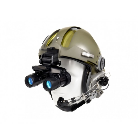 The Apache A-9Aviator Night Vision Goggle System represents a variant of the AN/AVS-6(v)/9 series ANVIS Goggle, which is the US Army/Navy standard fielded issue. AGM Global Vision brings a new level of performance to the system by offering the Apache A-9 with both standard P-43 green and high contrast P-45 white phosphor image intensifier tubes. The Apache A-9 System is equipped with Class A or Class B filter coatings on the objective lenses and offer a 40° minimum field of view. The large format 27mm eye relief eyepieces can be adjusted from +2 to -6 diopters for most corrective lenses. In addition, the Apache A-9 accommodates inter-pupillary spans between 51mm to 72mm and offers over 10° tilt adjustments to compensate for a wide range of in-service helmet applications.